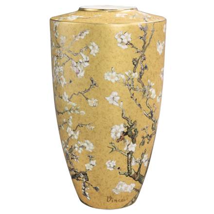 Setzen Sie mit dieser beeindruckend großen Portalvase ein Statement! Im Eingangsbereich, vor einem bodentiefen Fester oder vor dem Treppenaufgang – sie wird als Einzelobjekt alle Blicke auf sich ziehen. Das Gemälde „Mandelbaum in Blüte“ war für van Gogh ein Symbol für neues Leben und Hoffnung. In einer zeitgemäßen Interpretation in goldener Farbe wirkt es besonders opulent. Für Blumenarrangements bieten wir Ihnen einen speziellen Einsatz (Artikel 69-989-51-1).