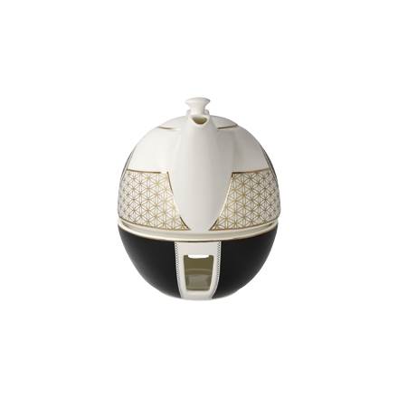 Teekanne mit Stövchen – Yin Yang Schwarz Weiß