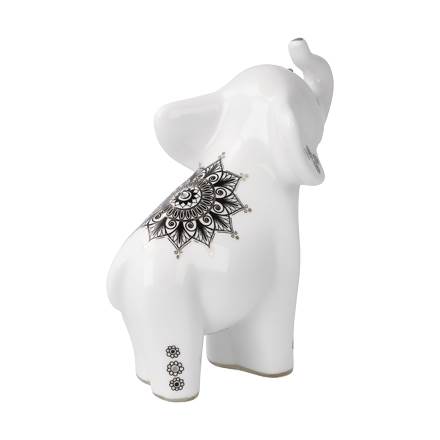 Die hochwertige Porzellanfigur ist mit filigranen Ornamenten und Blütenmustern, sowie mit Kristallsteinen und Platinakzenten dekoriert – ein Blickfang in jedem Ambiente.