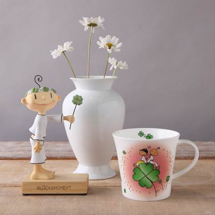 Der kleine Yogi genießt jeden Glücksmoment in seinem Leben. Und weil er sein Glück gerne mit Dir teilen möchte, beschenkt er Dich mit seinem Glück bringenden Kleeblatt, verziert mit einem Kristallstein. Die Figur ist befestigt auf einem Holzsockel mit eingebrannter Aufschrift. Ein Glücksgeschenk für einen Glücksmoment.