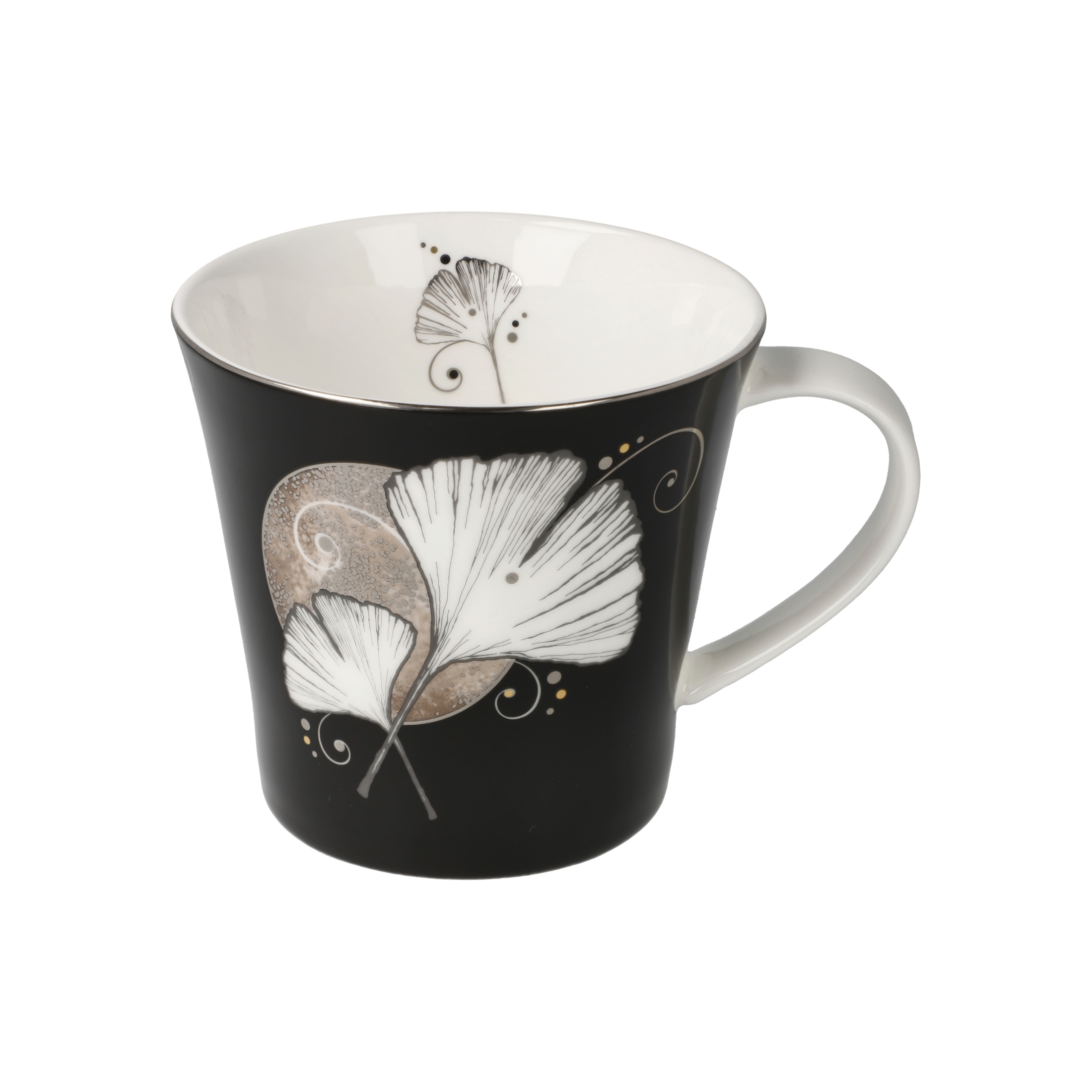 Coffee-/Tea Mug – Ginkgo schwarz mit Platinauflage