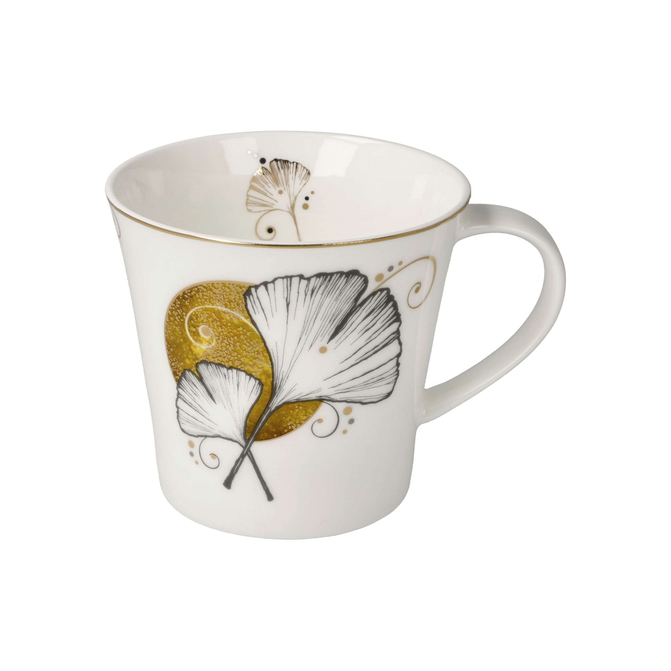 Coffee-/Tea Mug – Ginkgo weiß mit Echtgold
