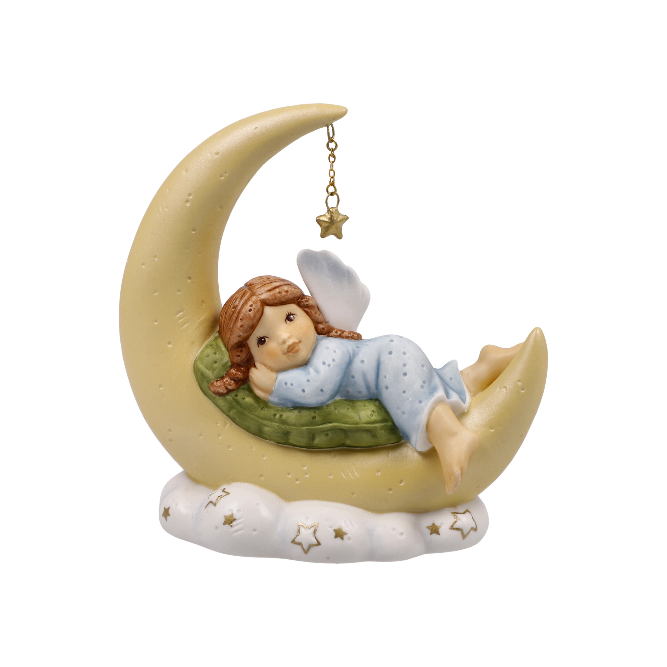 Während die süßen Schutzengelchen ihren Schutz verbunden mit viel Liebe in diese Welt senden, liegt dieses Engelchen ganz verträumt auf dem Mond und genießt die Stille.