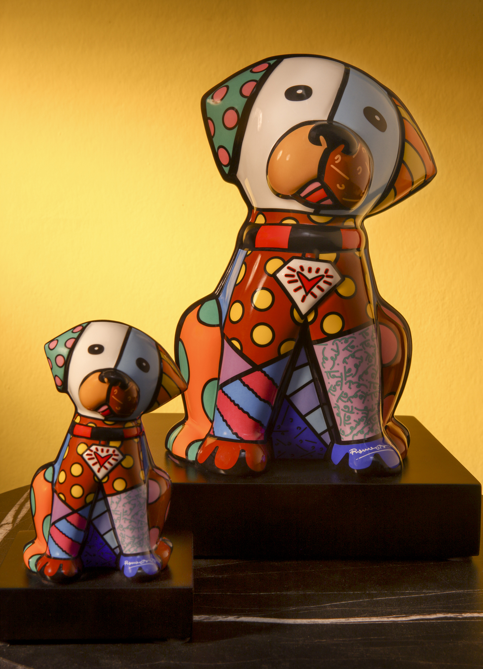 Jetzt wird es tierisch bunt – die hochwertige Porzellanfigur auf schwarzem Sockel ist ein wunderbares Geschenk für alle Hunde- und Pop-Art-Liebhaber.