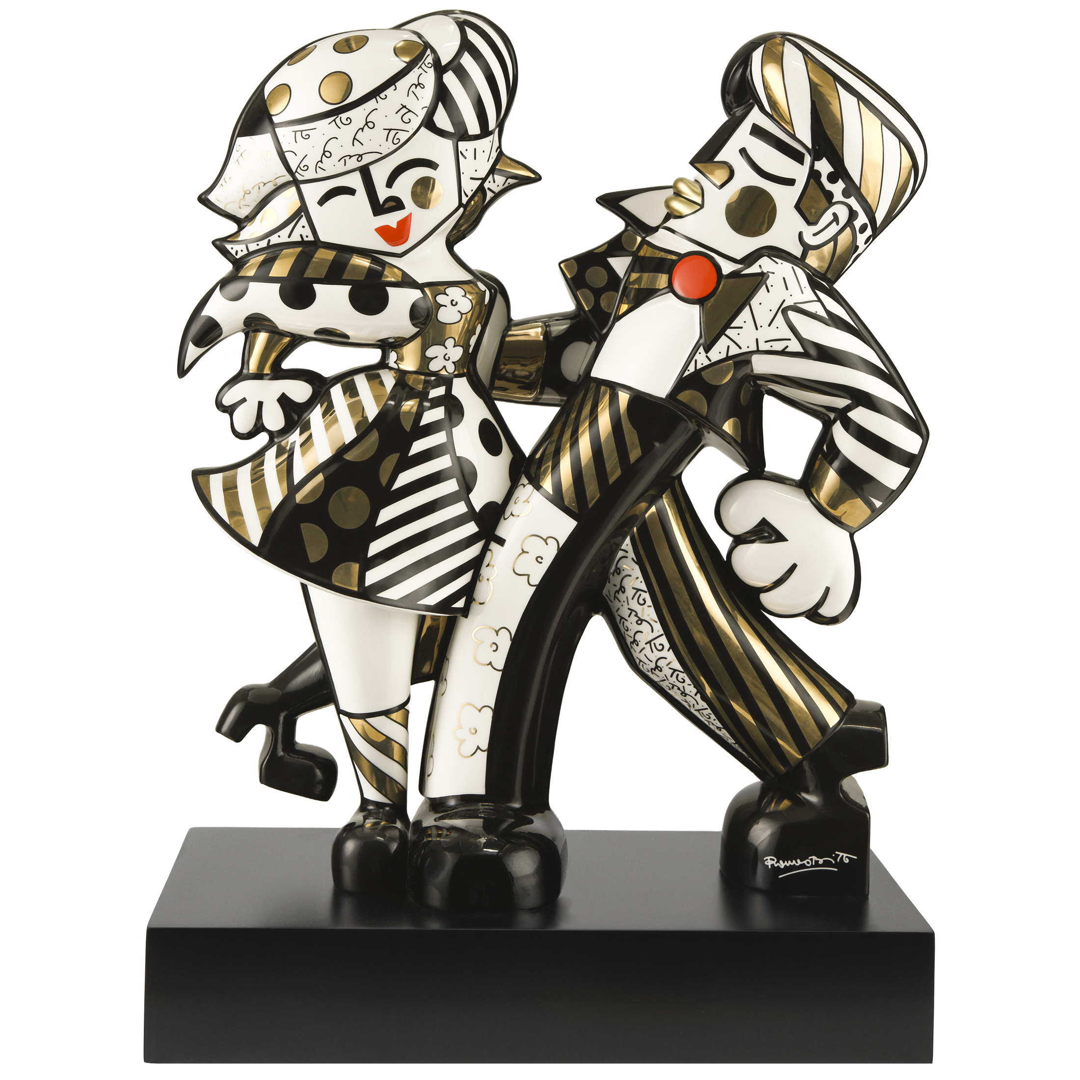 Goldene Zeiten für Romero Brittos Kunst! In dieser eleganten Schwarz-Gold-Edition zeigen sich seine sonst so farbenfrohen Motive von einer neuen, stilvollen Seite. Die Porzellanfigur ist ein handgearbeitetes Meisterstück – detailreich dekoriert und mit feinstem Echtgold von Hand veredelt.