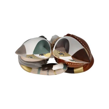 Ein weiteres Highlight in der aktuellen Kollektion ist die limitierte Edition „Mira und Mio“. Liebe und innige Zuneigung sind das Motto des charmanten Katzenpaares, was sich in allen Facetten der Gestaltung widerspiegelt. Aneinandergeschmiegt formen die beiden Körper zusammen ein Herz. Die modernen Farben Petrol und Kastanie ergänzen sich zu einer stimmungsvollen Harmonie, die durch Metallic-Goldverzierungen und Kristallsteinen fast schon magisch wirkt.