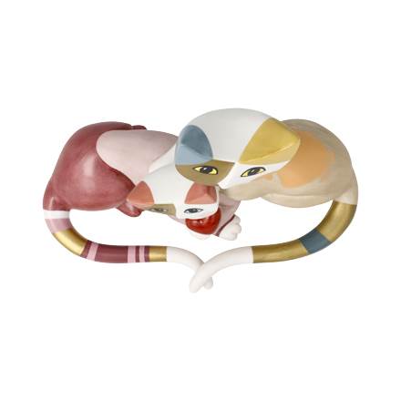 Vivien und Peppie sind ein verliebtes Paar und deswegen unzertrennlich. Die eng verschlungene Figurenkonstellation verdeutlicht ihre tiefe zärtliche Verbundenheit ebenso wie das harmonische Wechselspiel der Farben und die Verzierung mit Kristallsteinen.