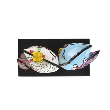 Die Objekte von Romero Britto sind in erster Linie den Themen Liebe, Freundschaft, Hoffnung und Freude gewidmet.