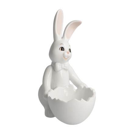 Stolz präsentiert uns der Hasenjunge die kleine Schale, die sowohl als Eierbecher als auch für Süßigkeiten oder als Blütenschale verwendet werden kann. Platzieren Sie die Figur auf dem Festtisch, in der Küche oder im Wohnraum – und der Frühling kann kommen.