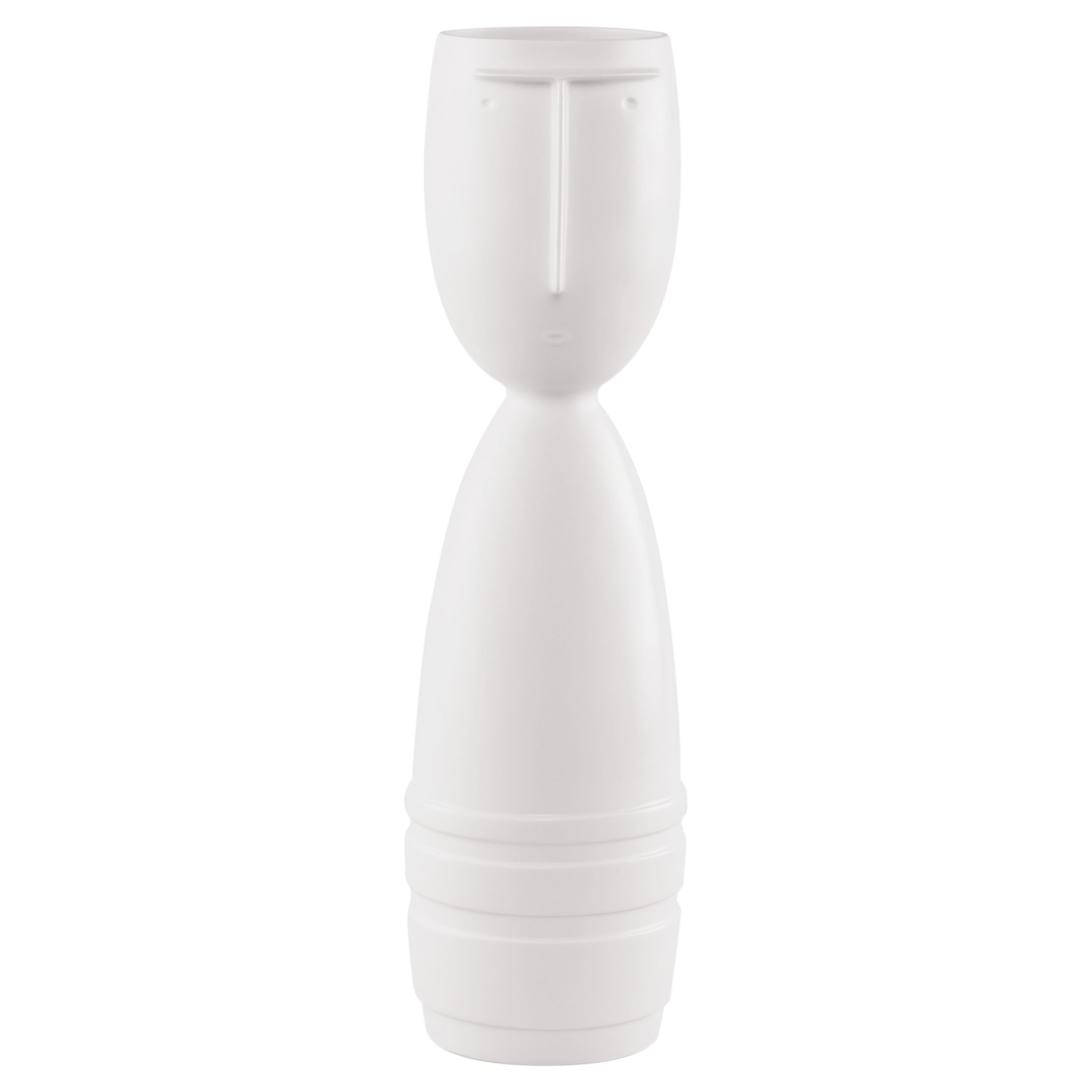 Für das neue Vasen-Ensemble Vultus sind wir den reinen und klaren Formen treu geblieben. Die Vase mit Gesicht ist schon mehrere tausend Jahre alt und noch heute ein sehr beliebtes Dekorationsobjekt. Durch das Goebel-Handwerk erfährt das Motiv nun eine neue Interpretation. Die Serie besteht aus vier verschiedenen Vasentypen und Gesichtsausdrücken – Günther, Klaus, Lina und Caro. Die Mimik ist dabei stark reduziert und der Korpus vollständig in Weiß gehalten. So fügen sich die Vasen stilvoll und unaufdringlich in ein elegantes Wohnkonzept.