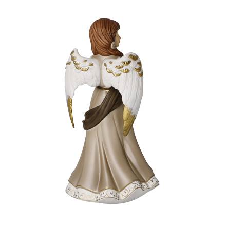 Mit all ihrer Liebe verschenkt diese Himmelsbotin ihr Herz. Die Anmut dieses schönen Wesens wird betont durch goldfarbene Ornamente und die Leichtigkeit, mit der sich der feine Stoff des Kleides und des Schals zu bewegen scheinen.