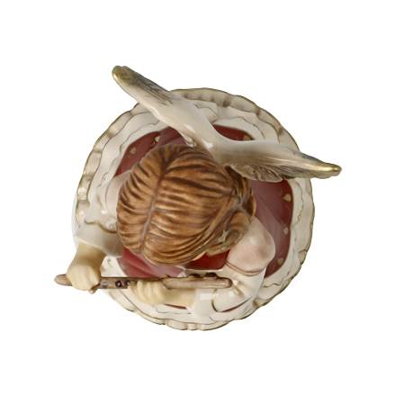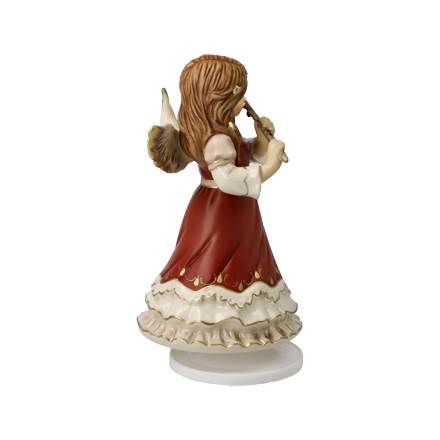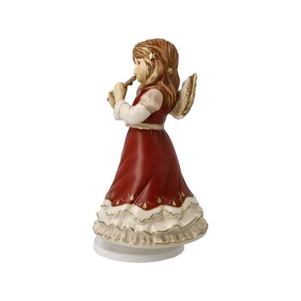 Der Himmelsbote mit Flöte steht fest auf einem Drehteller mit Musikwerk. Zieht man das 16-stimmige Musikwerk auf, so erklingen die allseits bekannten Töne der ‚Stillen Nacht‘. Der Schutzengel in seinem champagnerfarbenen Kleid mit filigranen Ornamenten ist eine schöne Gabe zur Weihnachtszeit.